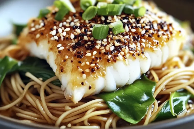 These Asian Fusion Sesame-Crusted Cod with Ginger Noodles are fantastic for busy cooks who want to save time during the week! You can marinate the cod up to 24 hours in advance; just brush them with the soy sauce mixture and coat them in sesame seeds, then refrigerate. The ginger noodles can also be prepared ahead and stored in the refrigerator for up to 3 days; simply cook and toss them with spinach, then let them cool before sealing in an airtight container. When you’re ready to serve, cook the marinated cod in a hot pan for just a few minutes per side, reheat the noodles, and voilà—your delicious, homemade meal is ready to impress with minimal effort!