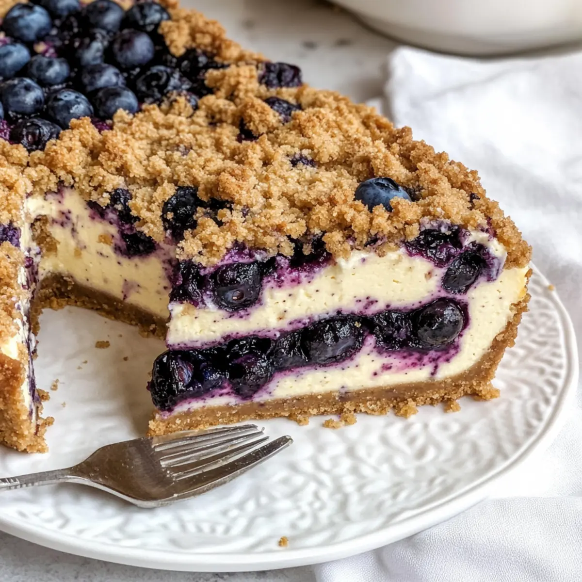This Blueberry Crumble Cheesecake combines creamy cheesecake with a buttery crumble, creating a delightful dessert perfect for any occasion.