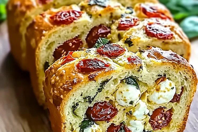 Once baked, let the bread cool in the pan for about 10 minutes before transferring it to a wire rack to cool completely. This cooling phase helps maintain the loaf’s structure and prevents sogginess. Slice into your Caprese Loaf Bread while still warm to enjoy its creamy mozzarella and tangy sun-dried tomatoes in every delectable piece.