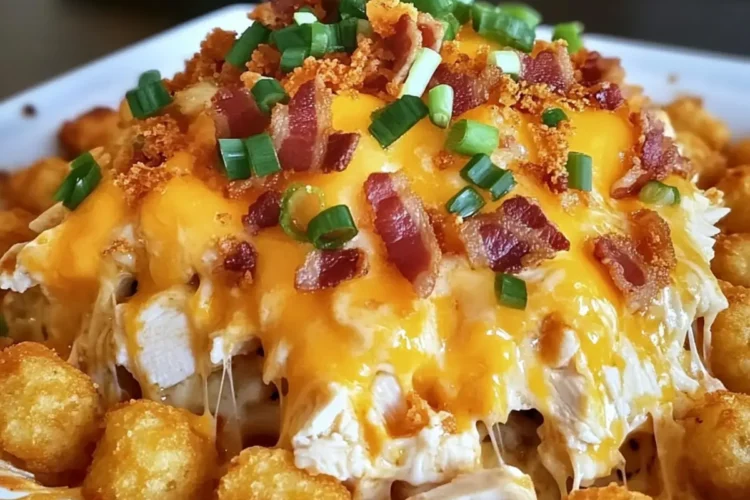 Experience the ultimate comfort food with Chicken Bacon Ranch Tater Tot Casserole, a delightful blend of crispy bacon, tender chicken, and crunchy tater tots.