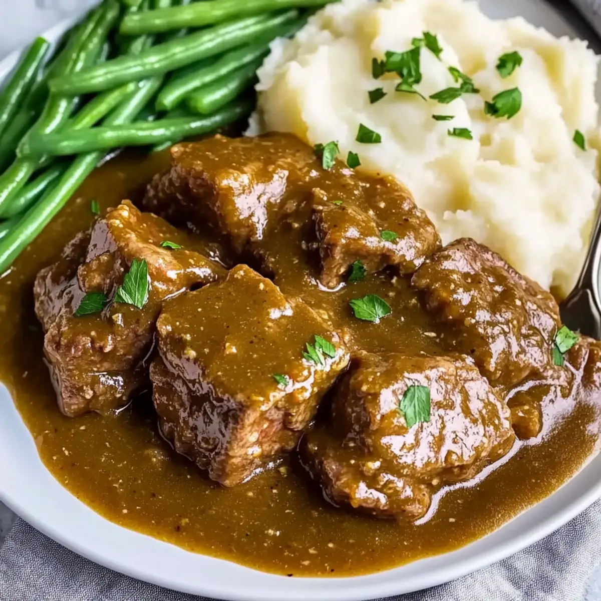 - Plate the tender cubed steaks and pour the rich gravy over them. Serve alongside mashed potatoes, rice, or bread.