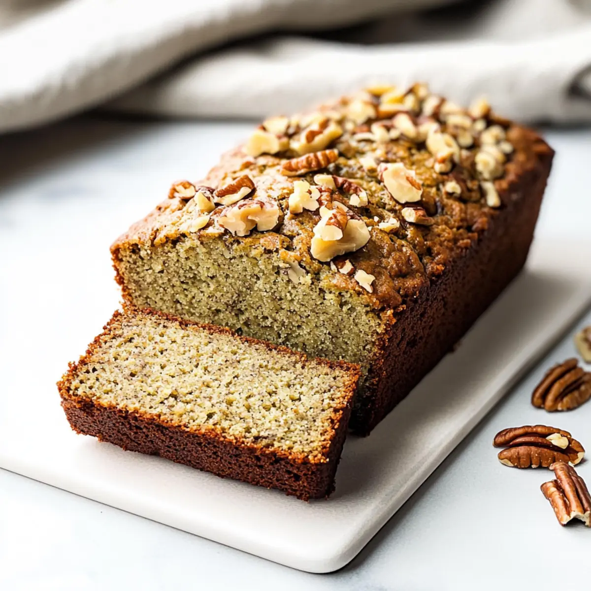 Sprinkle chopped pecans generously over the top of the batter, adding a delightful crunch to your Flourless Matcha Banana Bread. The nuts will toast beautifully while baking, enhancing the flavor profile. You can also substitute with walnuts or almonds if you prefer—it’s all about your personal touch in this lovely recipe.