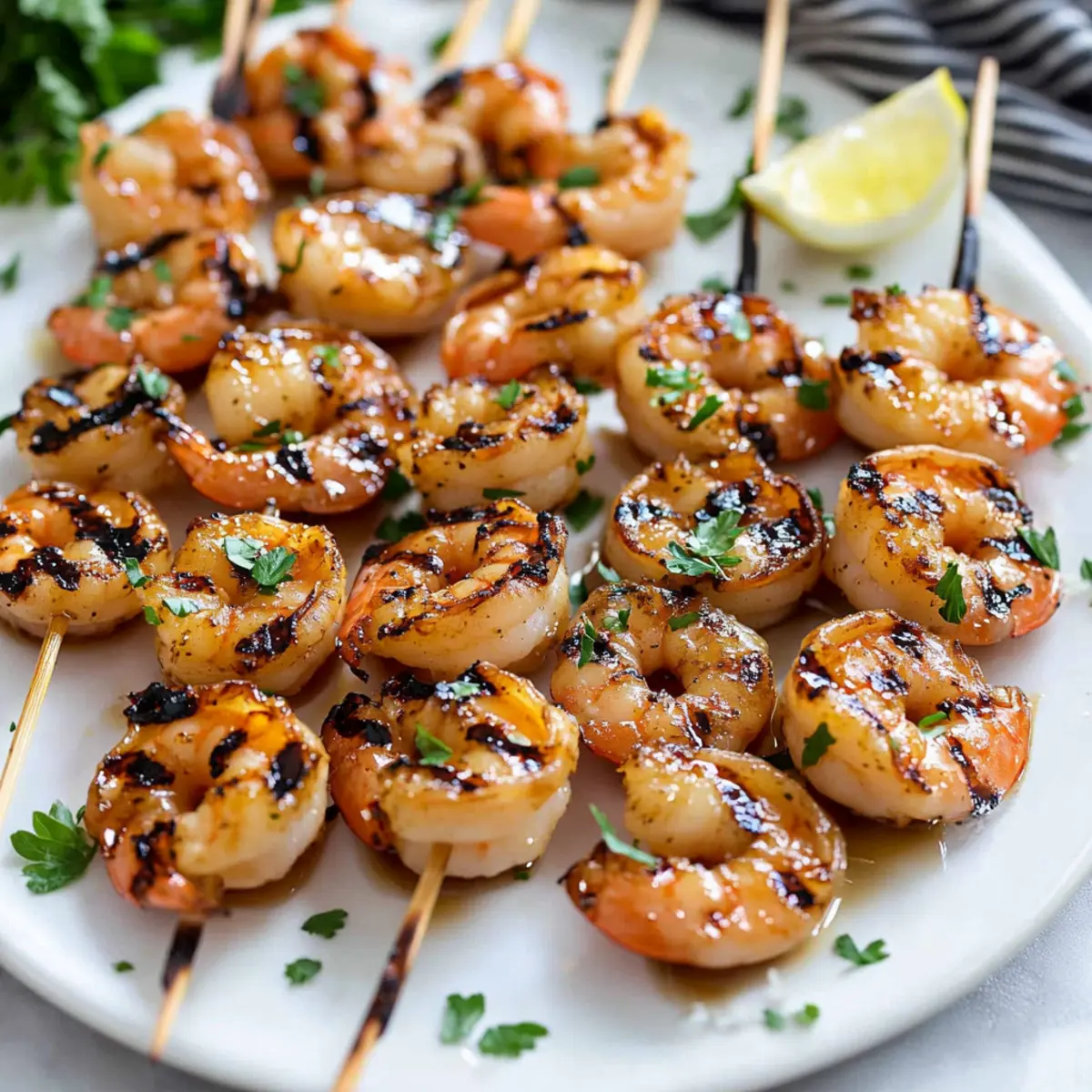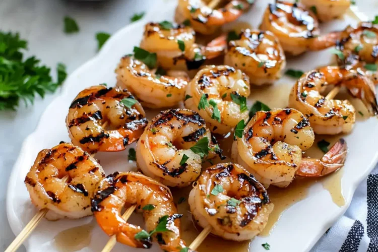 After grilling, carefully remove the skewers from the grill. If desired, garnish with freshly chopped green onions or parsley for a pop of color and added freshness. Your Easy Grilled Shrimp with Honey Garlic Marinade is now ready to be enjoyed, perfect for a delightful dinner experience!