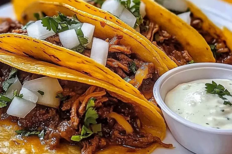 Irresistible Combination: Quesabirria Tacos bring together slow-cooked, tender beef and gooey melted cheese, creating a flavor explosion you won’t forget.