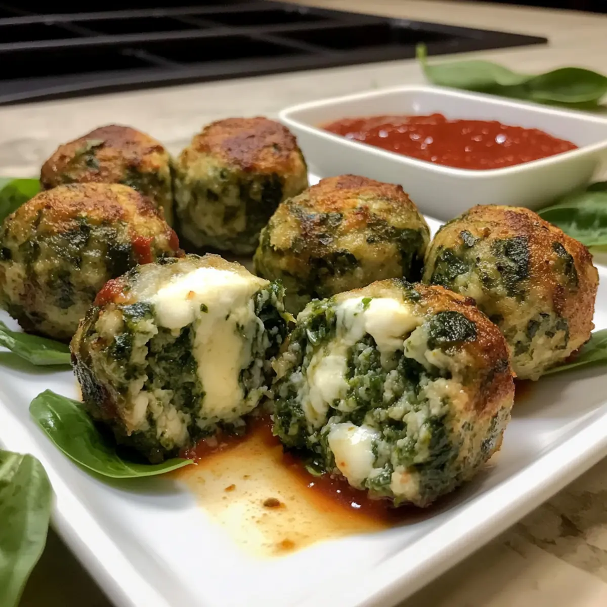 Comforting and Satisfying: Every bite of these Spinach Garlic Meatballs reveals a melty mozzarella surprise, making them irresistible to all.
