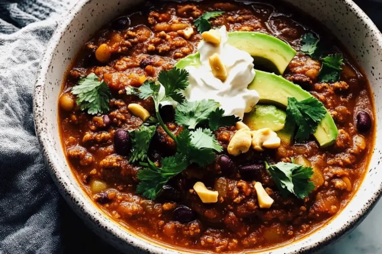 Once your chili has thickened and the flavors meld beautifully, ladle it into bowls and serve hot. Top with your favorite garnishes such as avocado, cheese, or cilantro for added flavor and texture. This hearty vegetarian chili is perfect for a comforting meal any day!