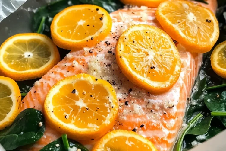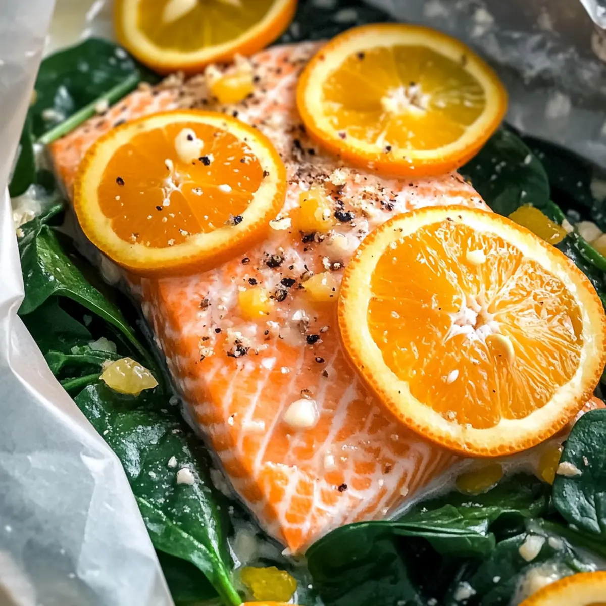 Once your citrus is arranged, layer the baby spinach over the citrus slices. This nutritious base not only adds fiber but also helps keep the salmon moist. The spinach will wilt beautifully during cooking, contributing to the overall enjoyment of your Zesty Salmon Al Cartoccio Packets.